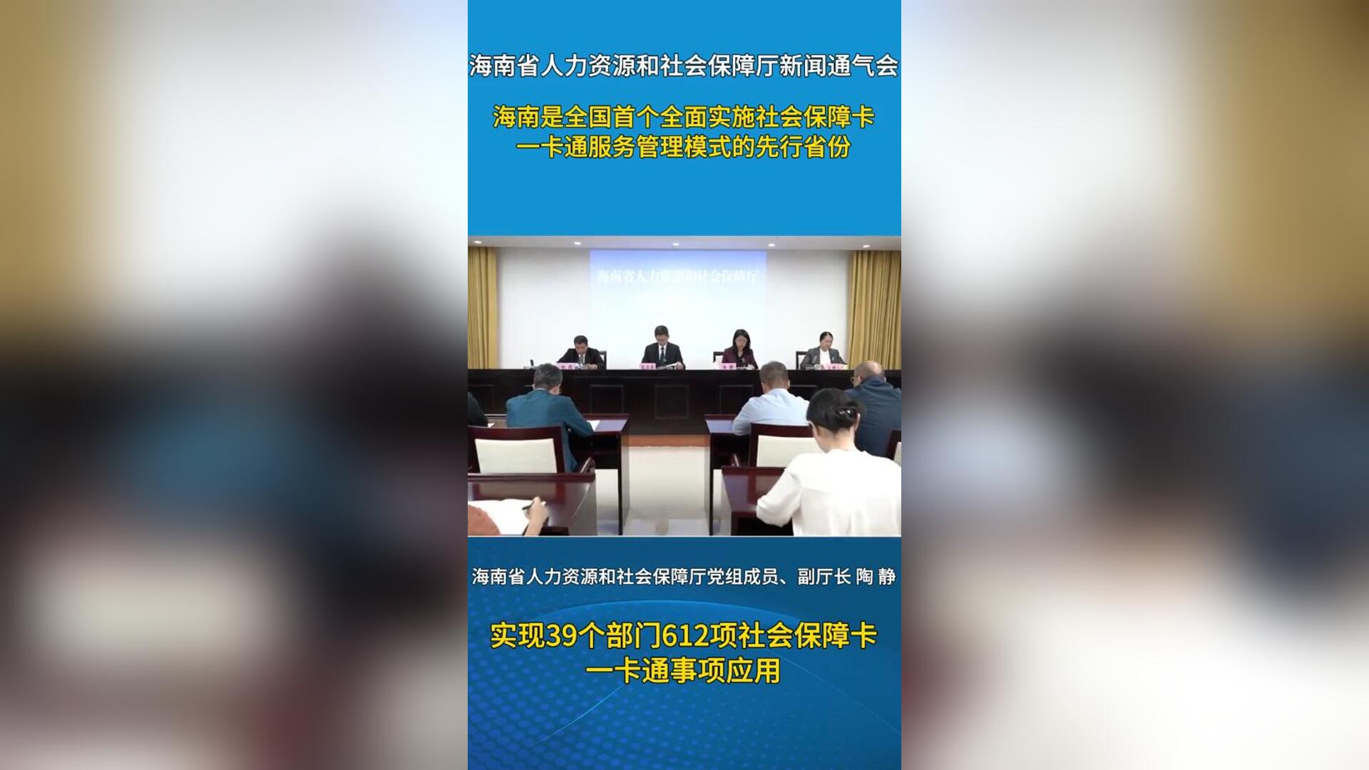 海南社会保障卡已实现39个部门612项事项“一卡通办”