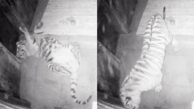 进村东北虎监控曝光:四脚朝天休息 官方回应“完达山1号”命名