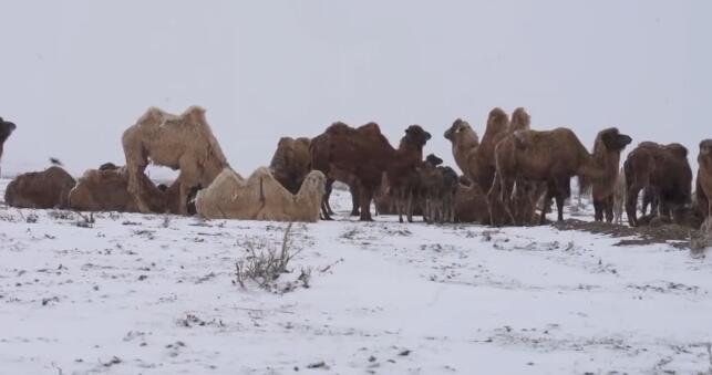 新疆4月飘雪骆驼穿上冬衣 积雪厚度达10厘米