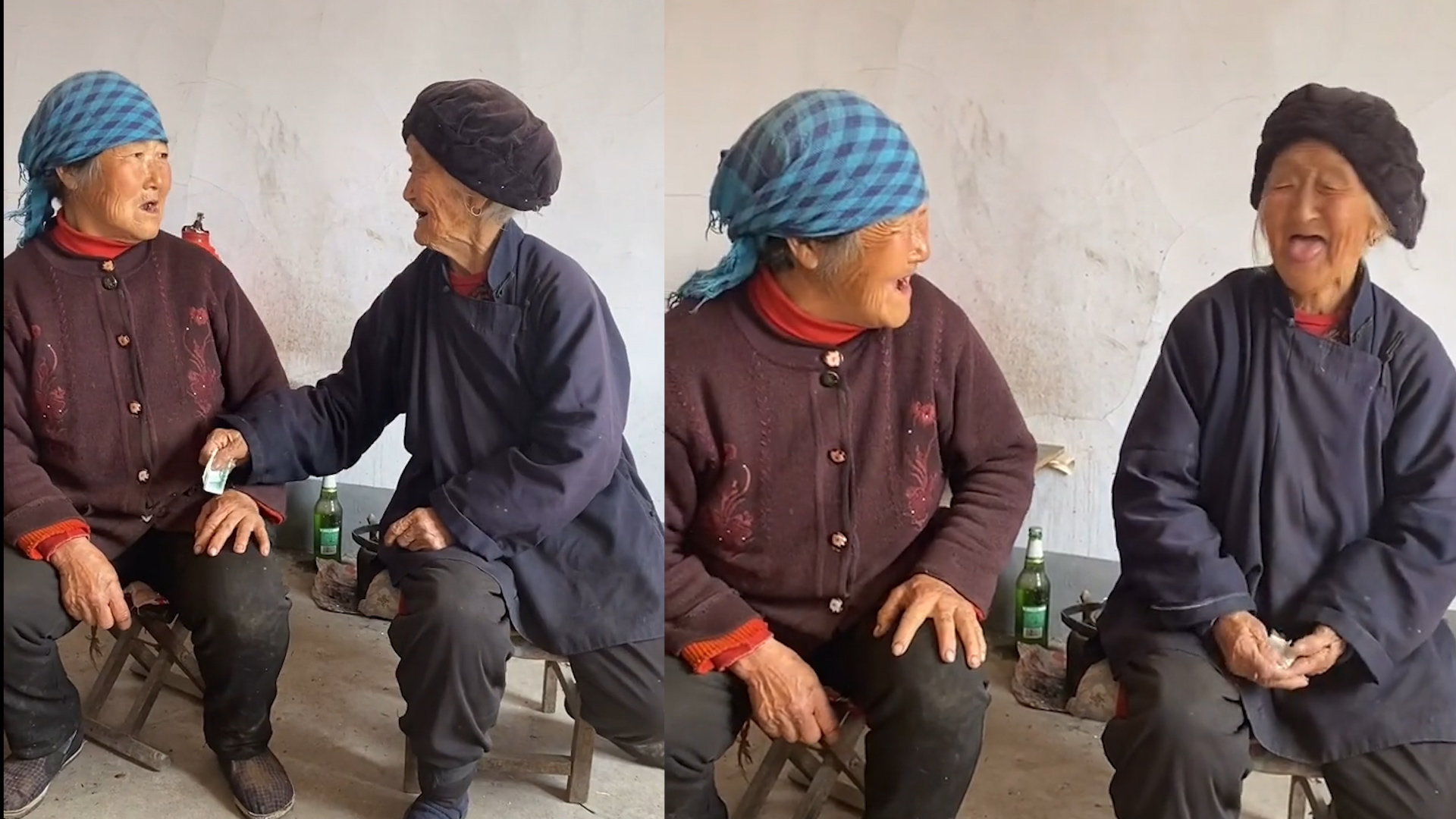 102岁妈妈给80岁闺女零花钱 两人相互推让开怀大笑