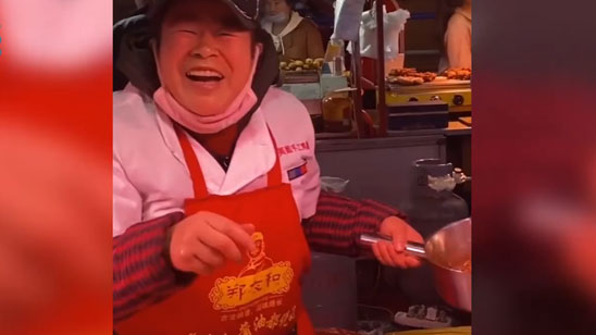 儿子假装路人找妈妈买鸡排 妈妈发现是儿子后高兴得像个孩子