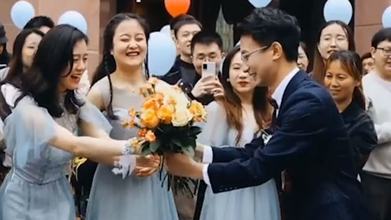 重庆新郎婚礼中亲手编制手捧花 现场亲友意外惊呼:好乖哦!