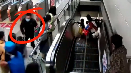 老人在乘坐扶梯时不慎摔倒 蜀黍立即扔掉手中背包飞奔赶去……