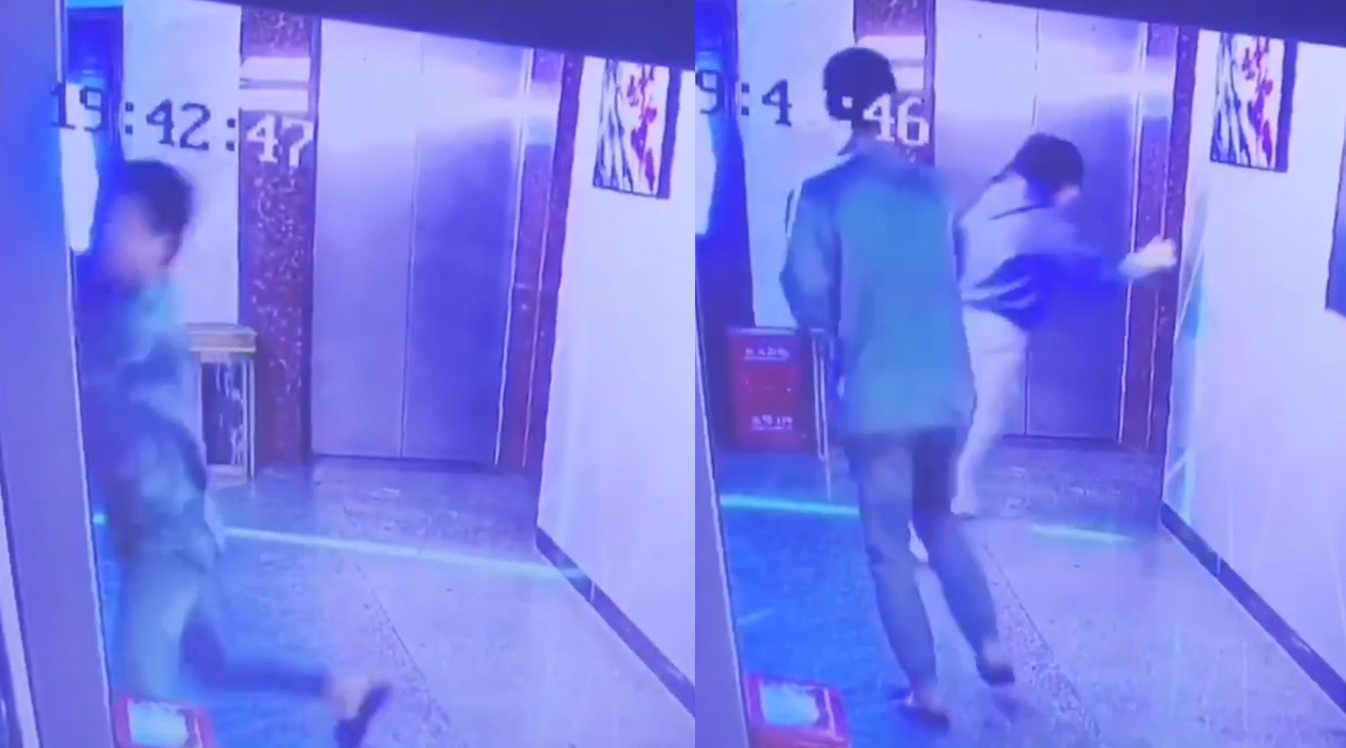 女子宾馆过道上发觉身后异常 转身一看后面的男子竟然被吓跑