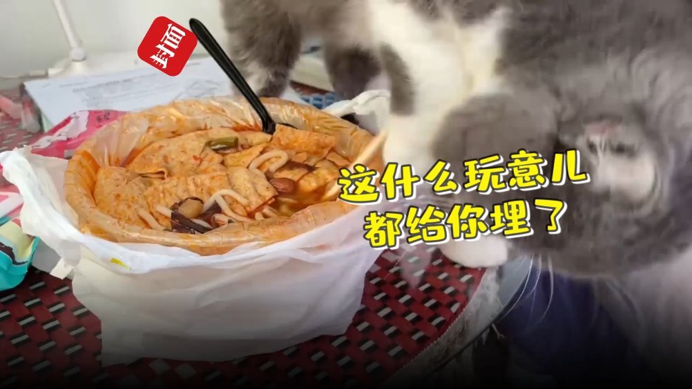 满满的嫌弃!小猫闻螺蛳粉嫌弃到疯狂埋屎