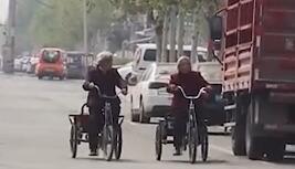 8旬闺蜜街头骑三轮追逐打闹 相伴走过60余年