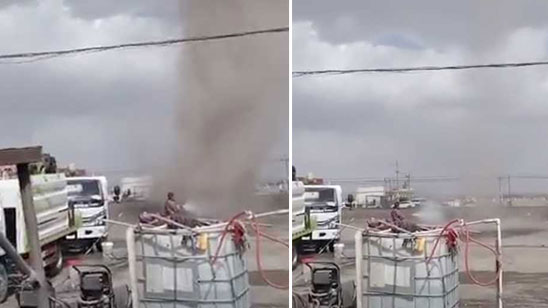 史上最憋屈龙卷风!青海洗车大爷淡定用水枪浇灭