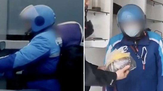外卖员父亲将女儿绑身上 交警:送你一个头盔