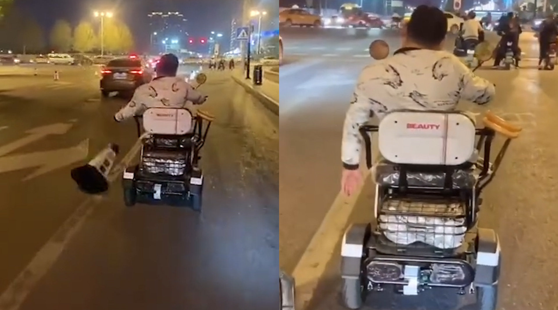 男子驾驶电三轮车接连推倒交通隔离墩 警方:推倒200多个 已处罚