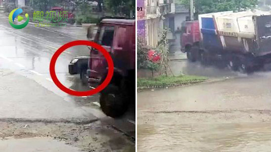 货车为避让皮卡车撞塌路边两层楼房 惊险一幕曝光!