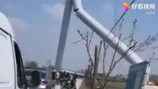 扬州一座百米高风力发电机倒塌 建成还不到半年