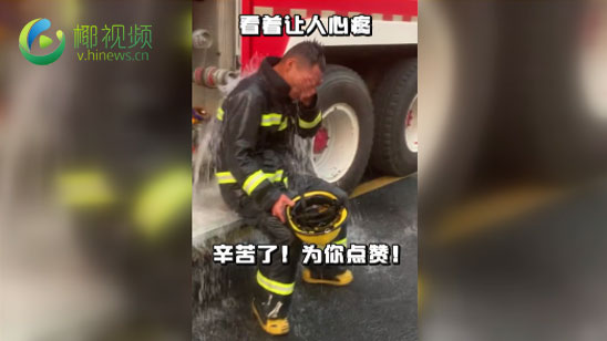 致敬!消防员灭火后用余水给自己降温