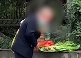 大爷街头卖菜用嘴喷水保鲜 目击者:疫情防护期间 这样太不卫生了