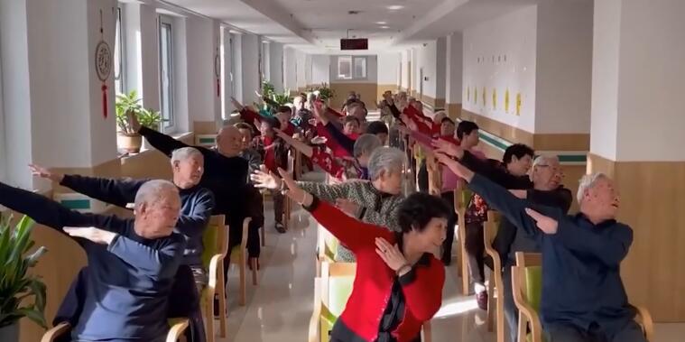 养老院老人集体舞动流行肢体舞 完美踩点场面欢乐十足
