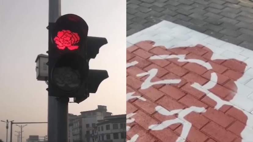 河南洛阳部分红绿灯变成牡丹形状