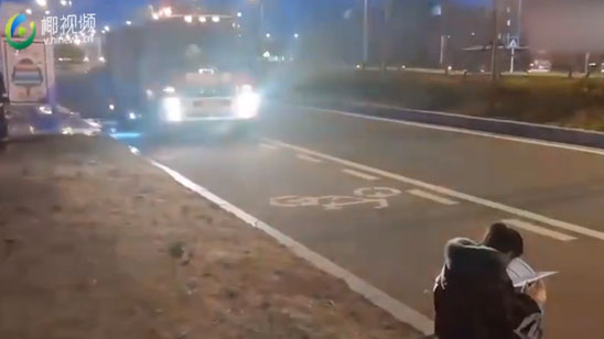 加油姑娘!高三女生等公交借消防车灯光看书