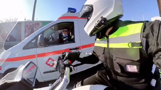 救护车被堵高速 摩托小哥车流疾驰开出生命通道