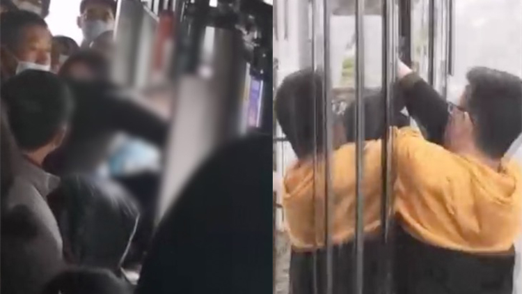 “公交猥亵男”想跳窗逃跑 被帅小伙一掌推回