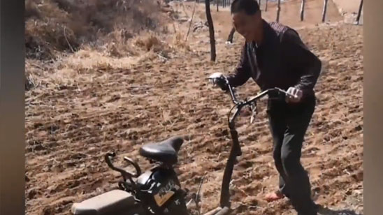 大叔将废旧电动车改装成犁耙 网友:废物利用,支持!