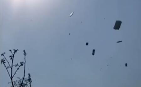 打包突遇龙卷风近百个箱子飞向高空 男子无奈向天呐喊