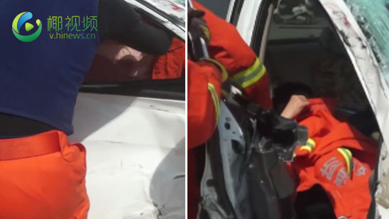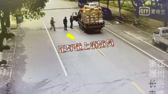 真幸运!货车上的货物自燃 路边正巧有位消防员