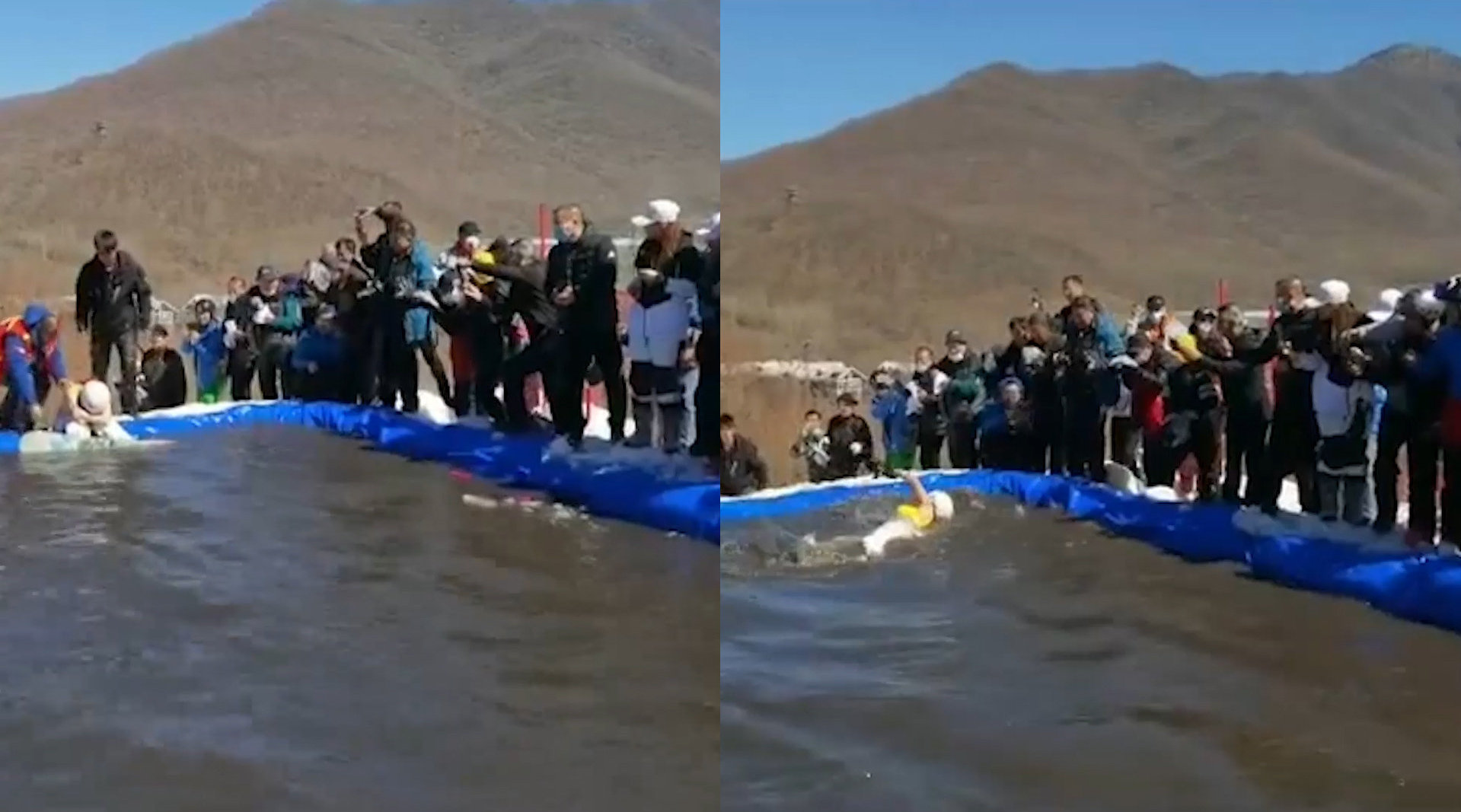 女子滑雪落水 围观群众无人救援 景区回应:周围有十几个救援人员