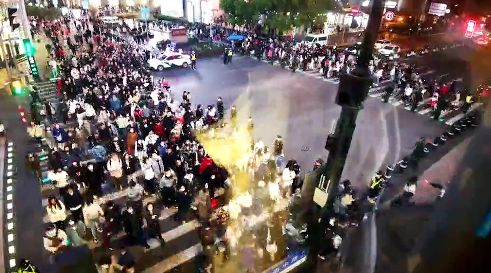 上海南京路又见武警拉链式人墙,组织行人整齐有序过马路