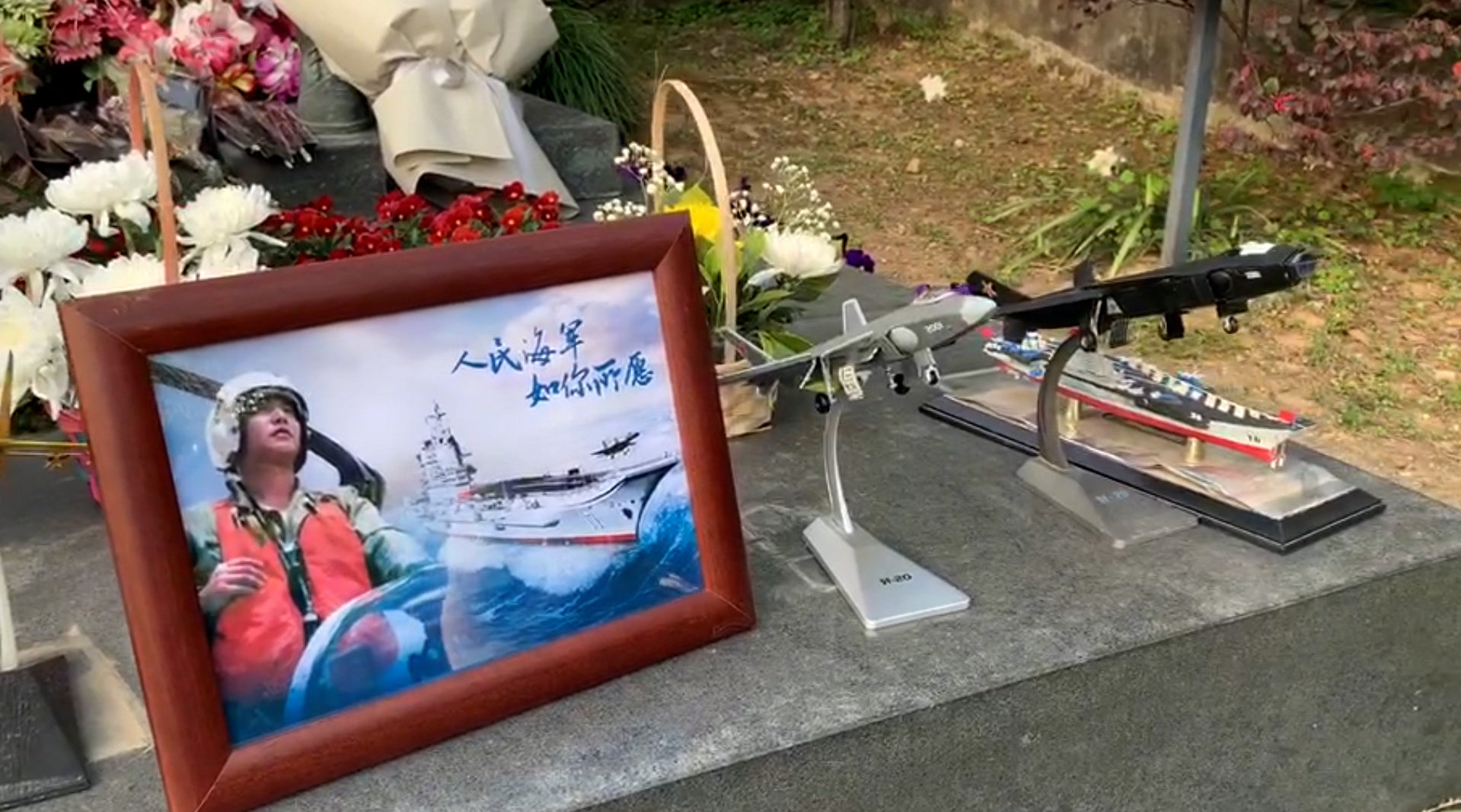 烈士王伟墓前有人送来航母模型 陵园工作人员:今日海军如您所愿