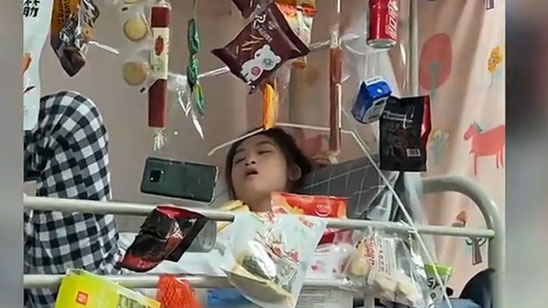 大学生太懒不愿下床宿舍自制零食帘幕 学习上年年拿奖学金
