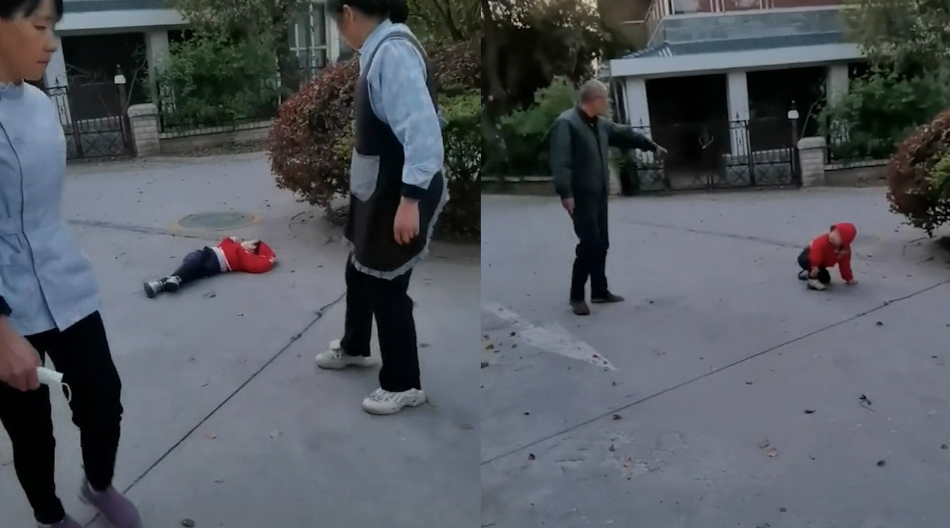 “熊孩子”倒地撒泼不回家 老大爷送上一波神助攻 吓得孩子秒认怂