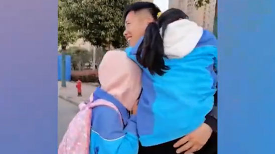 爸爸打工一个月未见偷偷回家躲树后送惊喜 双胞胎女儿反应泪崩