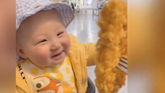 宝宝看到食物后逐渐笑成一朵花 网友:像极了我看到炸鸡的样子
