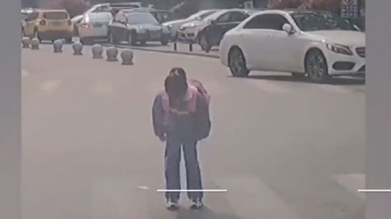 小车斑马线礼让 小学生90度鞠躬致谢 司机一路追随送“奖状”