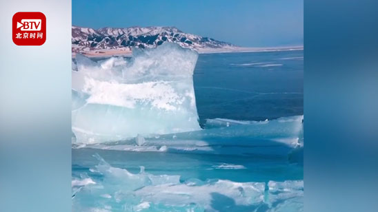 美炸了!新疆赛里木湖冰雪融化 碎冰堆积岸边现蓝冰奇观