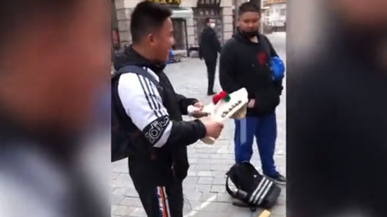 小伙买下心仪许久的快板现场表演打骨板 大爷打竹板合奏