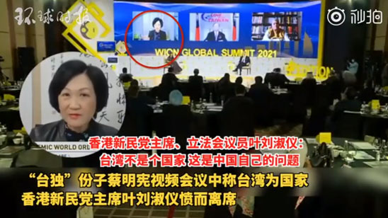 “台湾并非国家,而是中国的一个叛乱省!” 说完她愤然离席