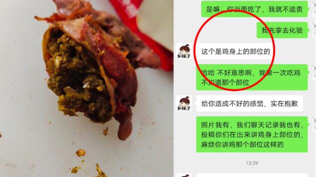 男子服务区买卤鸡胗咬到“鸡粪” 客服:是鸡的一部分