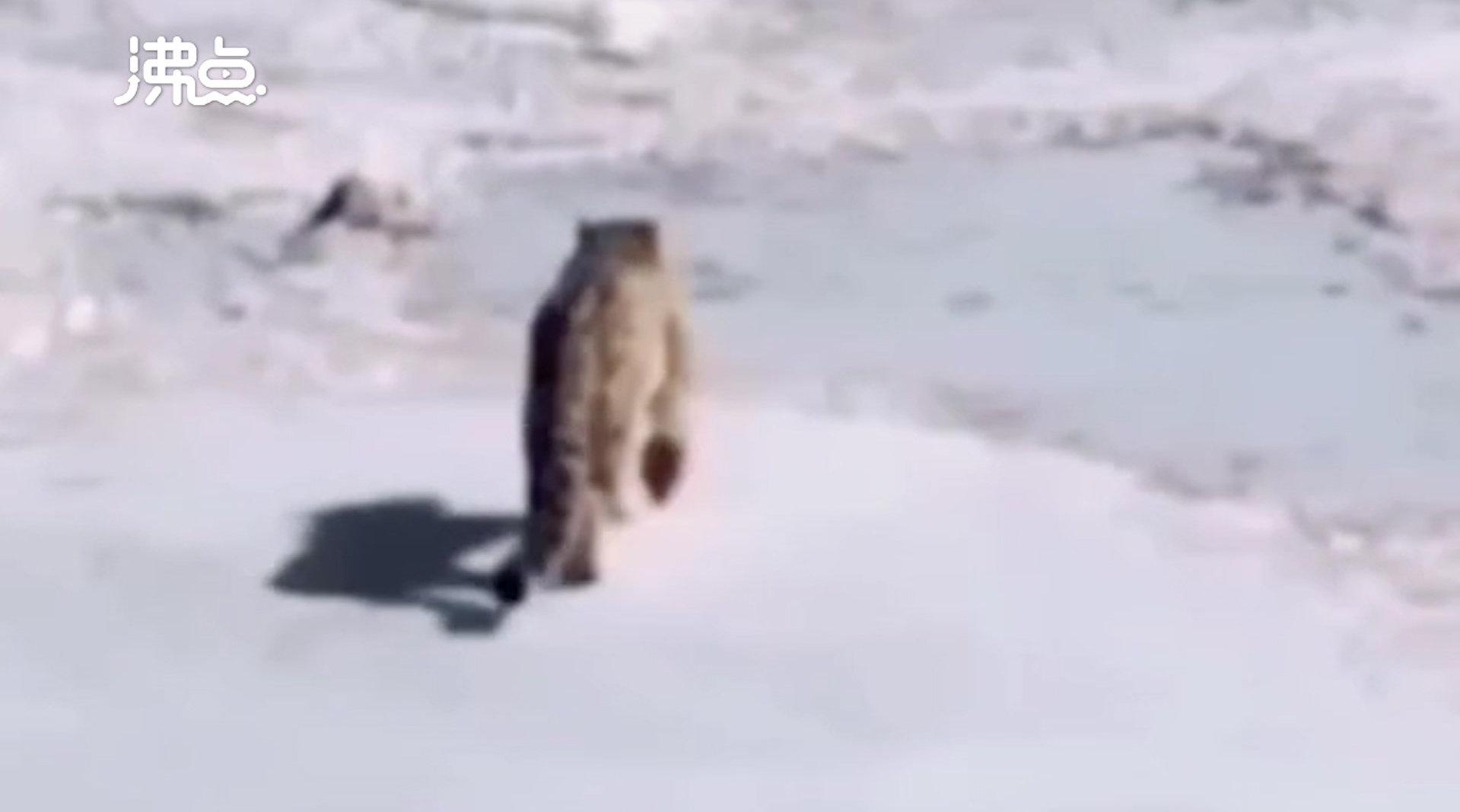 青海生态管护员拍到雪豹长江迁徙画面 100多米冰面上疾步行走