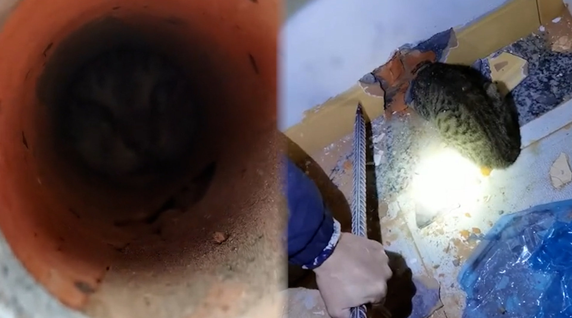 猫咪捉老鼠被卡墙上洞口,目击者:以为它抓到了,结果卡住了