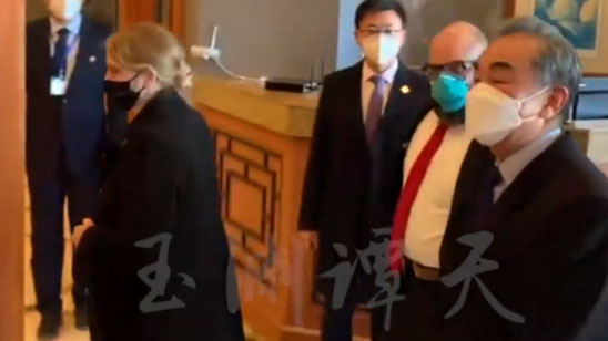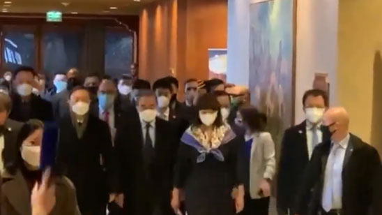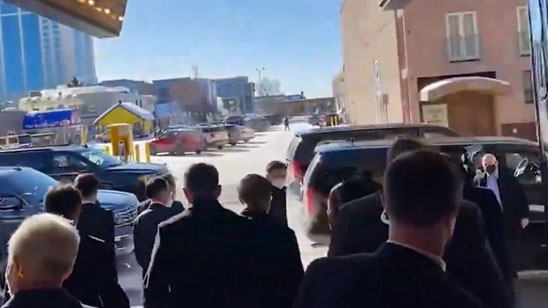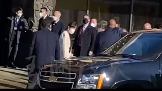 中美高层战略对话结束,中方代表团乘车返回下榻酒店