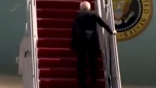 拜登上梯子拌了几下 白宫发言人表示:拜登身体100%没事儿