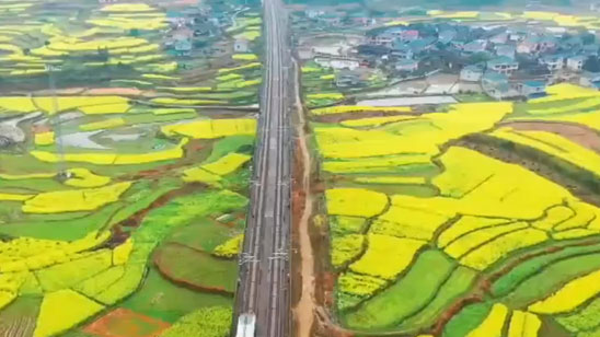 美!沪昆高铁油菜花海中穿行