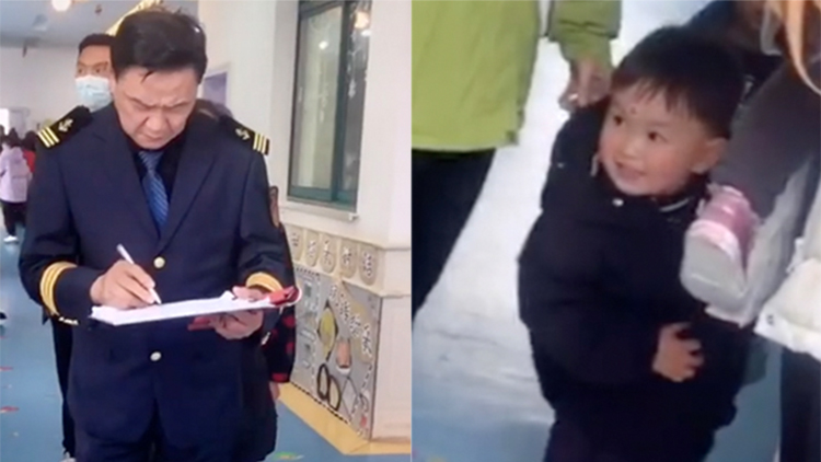 萌娃指定爷爷穿制服接送上学 妈妈:有点军人情结