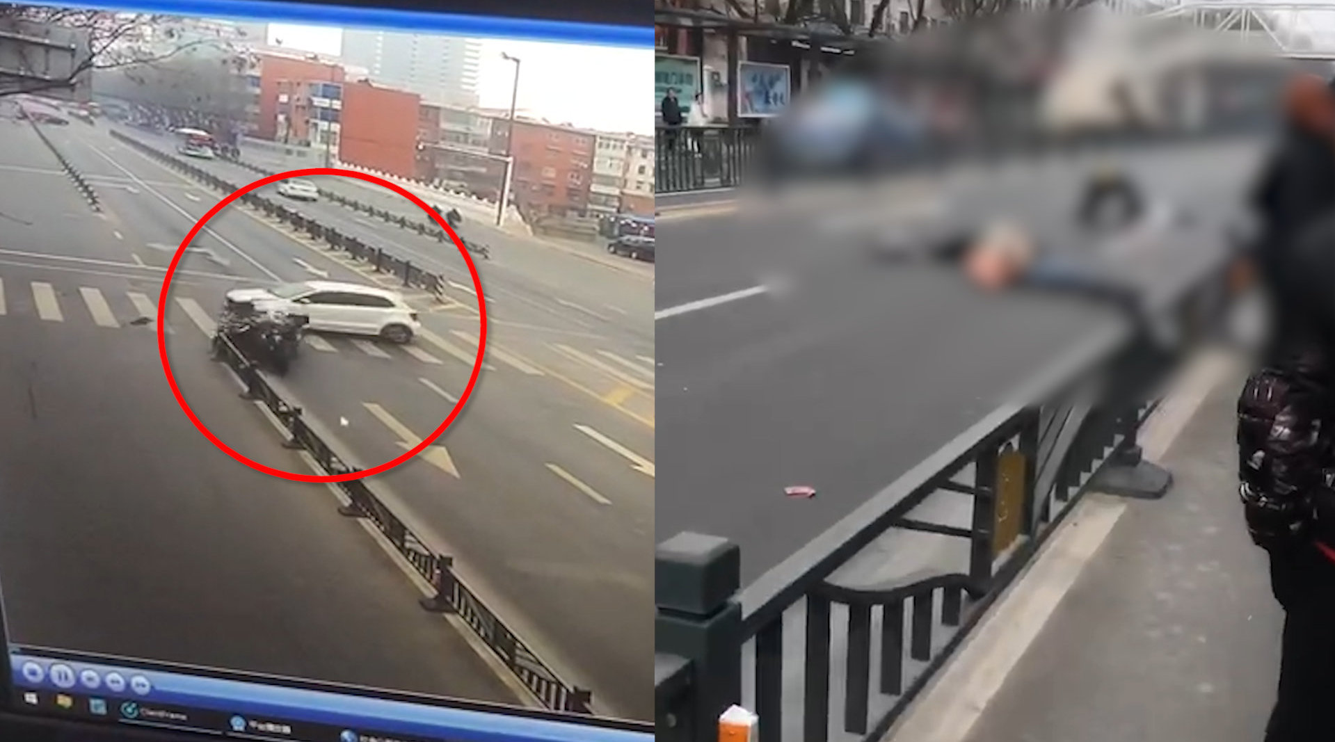 河南焦作一中学门口发生车祸 三人被撞飞数米 监控记录惨烈瞬间