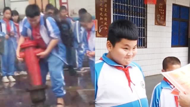 压住漏水消防栓的海南萌娃获颁奖状 这表情把网友们逗笑了