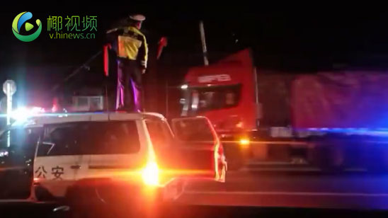 电缆脱落悬半空 民警黑夜托举保畅通
