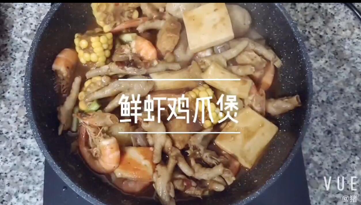 饭点 一分钟教你学会香浓入味的鲜虾鸡爪煲,吃起来太过瘾了