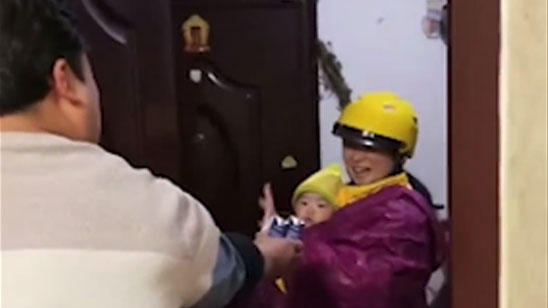 外卖员抱年幼孩子送餐迟到50分钟 顾客开门瞬间反应好暖