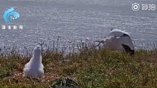 信天翁“紧急迫降”摔个“狗啃泥” 场面相当尴尬……
