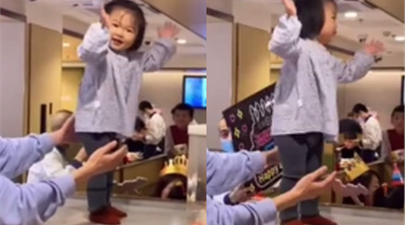 年龄最小的气氛组!一岁多萌娃听到隔壁过生日 跟着音乐起舞嗨不停